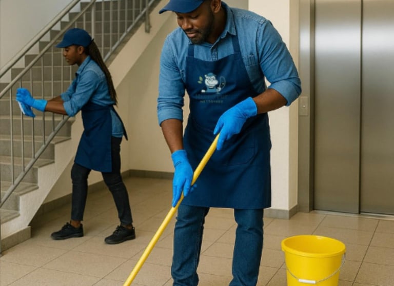 Nettoyage des parties communes : escaliers, paliers, laveries,ascenseur , locaux vélos