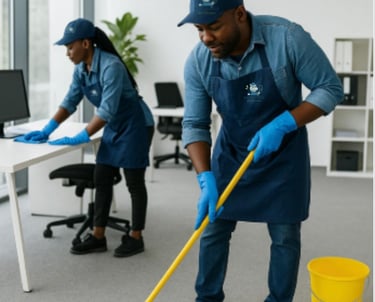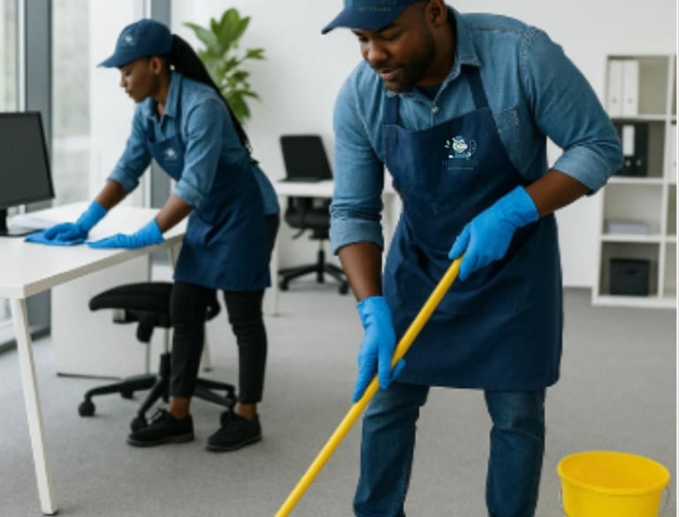 Nettoyage des bureaux, sanitaires, sols, contrat de chantier.